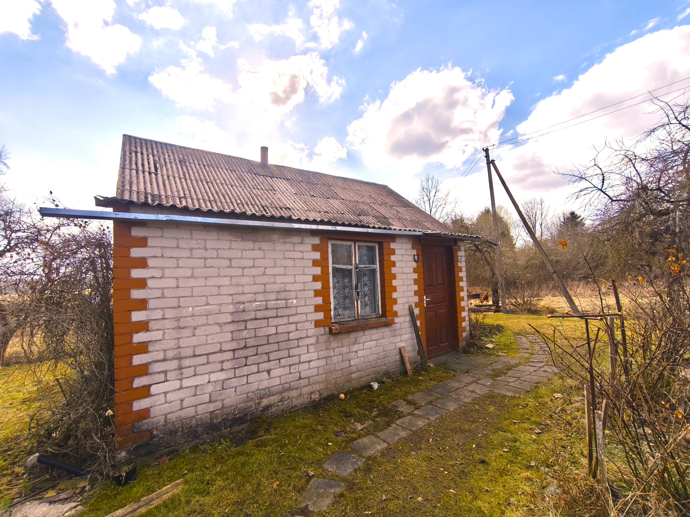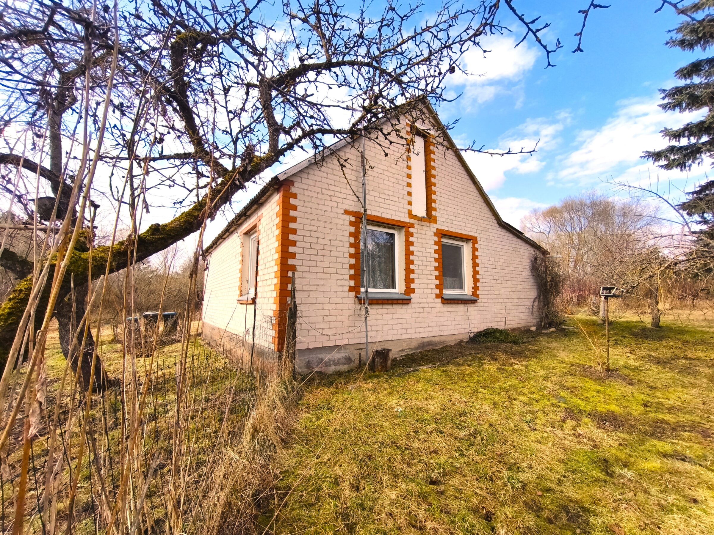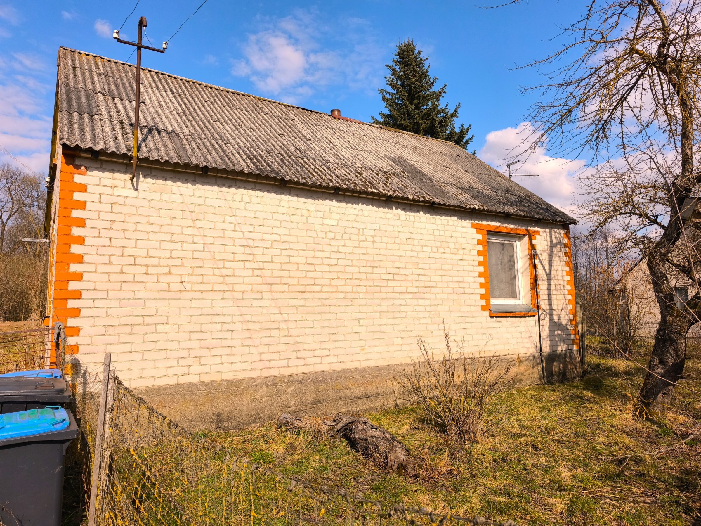 – Vieno aukšto rąstinis apmūrytas namas 60kv.m.(3 kambariai, virtuvė, koridorius, du sandėliukai);